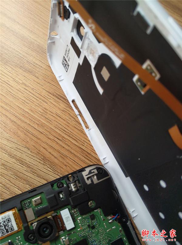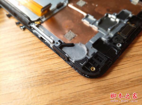 前面提到,指纹识别模组被设计到了后盖上,我个人猜测也许是出于保护的原因,在主板与后盖之间又加了一个小支架,当然也许我分析错误,也许这个支架还有其他的作用。