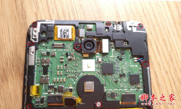 拆完电池,根据红色圈圈,即可拆主板,进入手机最大脑的地方