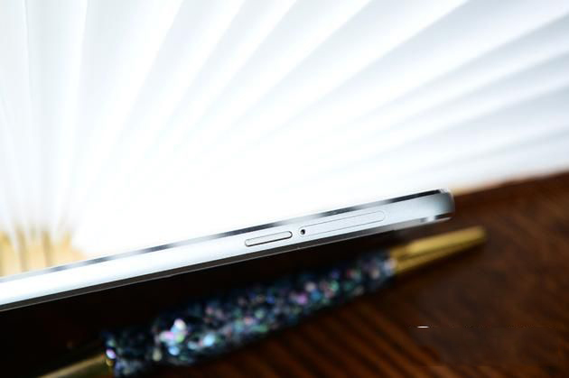 金属材质的中框表面采用了磨砂处理,与倒脚的切割面对比鲜明。顶部是耳机孔与降噪孔,底部是microUSB充电数据接口与对称的两排开孔(右侧扬声器左侧话筒)。机身左侧为双SIM卡插槽与电源键,比较奇怪的是这枚电源键的位置十分靠上,无论左手还是右手握持无法舒服地按到。右侧为音量加减键,两侧按键键程都比较脆回馈感不错。