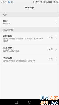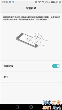 ▲指关节智能截屏功能设置界面