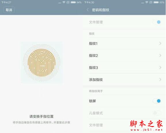 小米5采用了一条细长的前置指纹识别Home键,一根手指录入指纹需要放置手指18次左右。虽然小米5的指纹盖板采用的是陶瓷材质,它拥有高于蓝宝石的 介电常数,能使指纹识别更灵敏,但由于其指纹识别按键做的非常细长,在实际体验过程中,会出现按不准的情况,在一定程度上影响识别率。小米5的指纹识也不 仅限于解锁功能,它还别支持儿童模式、文件关键及应用锁,不过有一点比较遗憾目前小米5并不支持微信、支付宝等支付平台的指纹支付。