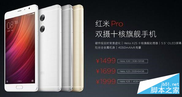 红米Pro高配版:搭载联发科Helio X25十核处理器、3GB运行内存、64GB存储空间,售价1699元;