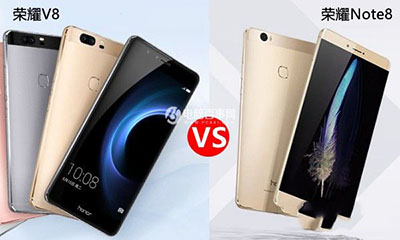 从荣耀Note8和V8高配版硬件对比来看,荣耀Note8在屏幕分辨率与机身存储方面显得规格要要高一些,而荣耀V8主要是在主摄像头方面规格要高一些,硬件方面可以说各具亮点。
