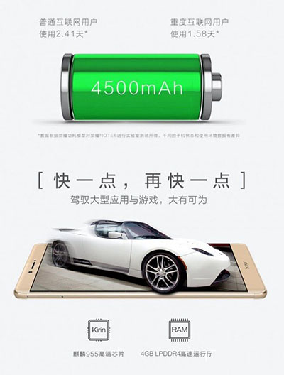荣耀Note8高配版采用6.6英寸2K屏 + 麒麟955八核处理器 + 4GB运行内存 + 64GB存储空间 + 全网通 + 前置800万/后置1300万像素摄像头,售价2499元;