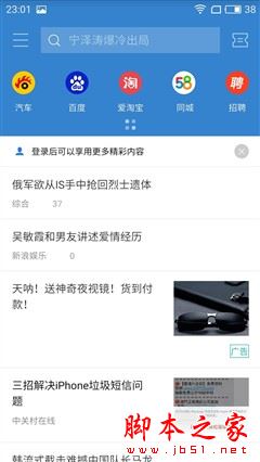而YunOS内置阿里此刻更像是一款集合了网站黄页、新闻瀑布流、搜索引擎、生活服务以及卡包的一款功能全面的应用。整个页面的集成度与实用性都非常高。
