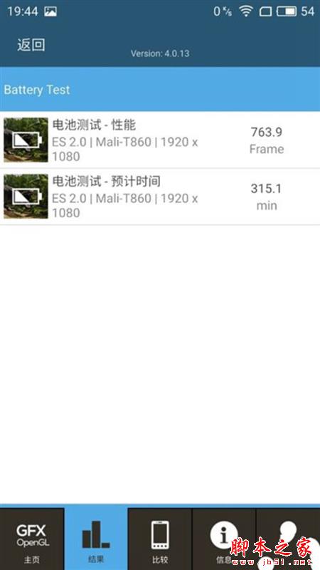 GFXBench的两项测试成绩为315.1分钟、421.9分钟,也就是5个多小时和7个小时,等于不停地打游戏基本可以玩6个小时左右,和安兔兔的测试结果基本差不多。这意味着魅蓝E重度使用也能够保证一天。
