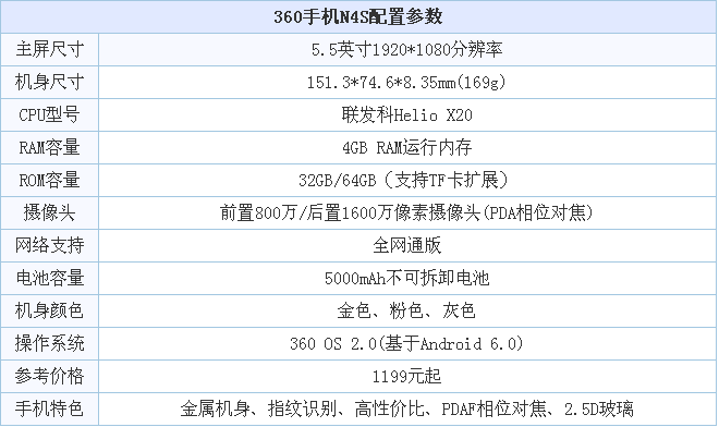 先来看看360手机N4S硬件配置参数,详情如下所示:
