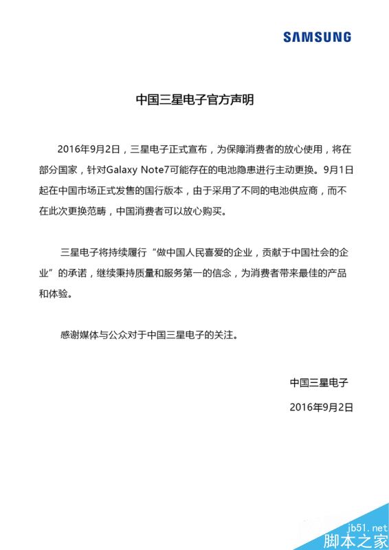 不过,三星中国已经声明,国行版本的Galaxy Note 7未使用问题电池,不在召回之列,仍将继续发售,消费者可放心购买。