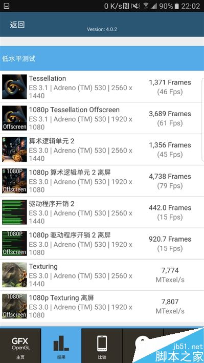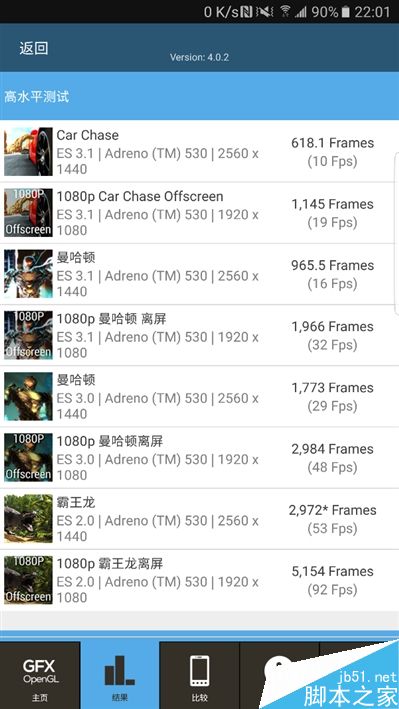 Adreno 530不愧当今最强移动GPU,·即便是在2K分辨率下成绩也很理想,GFXBench里最新最苛刻的赛车项目也跑出了10FPS,要求最低的霸王龙则超过50FPS,1080p下更是超过90FPS。