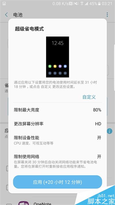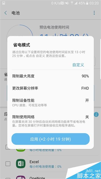省电模式:亮度最大90%,分辨率降至1080p,开启设备性能限制,熄屏半小时后自动关闭网络。这个还是很实用的,对体验基本无影响,还能多用好几个小时。