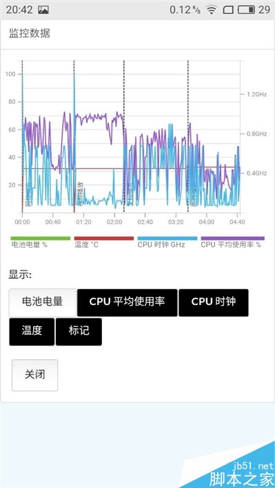 PCMark系统综合性能测试超过4000分。注意看右侧的CPU频率、占用率曲线图,视频播放旗舰CPU频率很低,占用率很高,并没有发挥完全,看来还需要进一步优化。