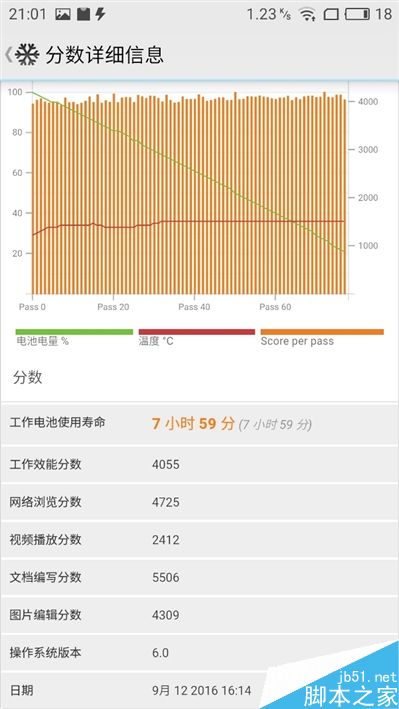 安兔兔测试中,电量从100%到79%用时1小时22分钟,意味着全程高强度使用六七个小时没问题。