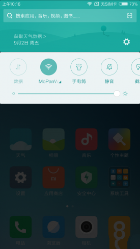 红米Note 4的通知栏融合了许多细节功能,如全局搜索、天气预报、支持直接打开相关设置(如WI-FI)的快捷功能等,魅蓝E则依然以通知和快捷功能为主。