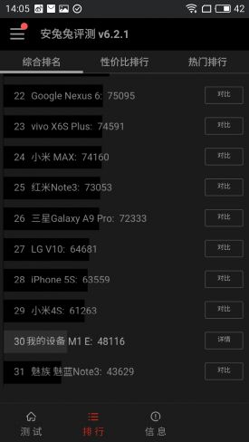 从软件跑分方面,红米Note 4的毫无悬念的高出了魅蓝E一倍,毕竟从处理器等级方面两者有着不小的差距,从传统的性价比的角度来看,红米Note 4确实要更好。