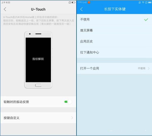 值得一提的是,相比于红米Pro指纹解锁,ZUK Z2还支持指纹支付功能,其Home键更是集五大功能于一体,其U-Touch功能包括指纹识别、轻触返回上一级、左右滑动切换应用、按下回到桌面、按下两次进入历史应用,另外还支持熄屏解锁,这点上比红米Pro更为出色一些。