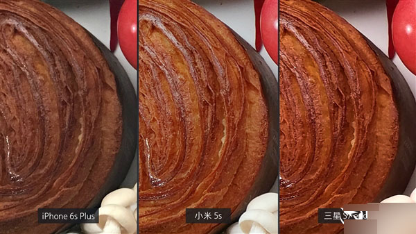 从对比样张看,小米5S的拍照色彩更加自然,Galaxy S7 Edge明显发白,iPhone 6S Plus则过于黯淡。