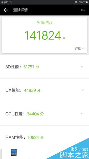 测试工具为安兔兔最新的版本,在跑分之前,我们对小米5s Plus进行了重启,清了后台,保证小米5s Plus能够火力全开,经过多次跑分测试最高成绩定格在141824,同官方16万+的分数还有一定的差距,看来安兔兔还需要再更新更新。