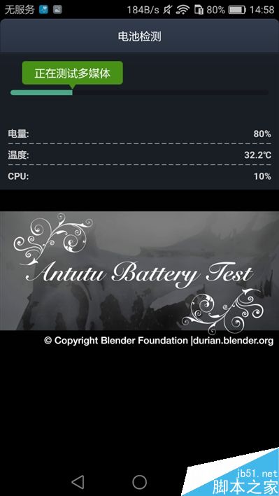 安兔兔高负载测试,电量从100%到80%坚持了1小时10分钟,预计全程可以支撑至少5个半小时。