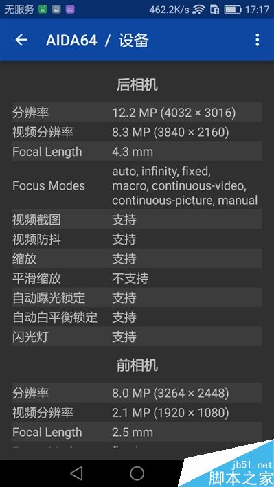 配置方面也是中高档水准:14nm工艺的骁龙625八核处理器性能足够,功耗和发热很低;3/4GB内存日常无压力;3020mAh电池续航耐久,可以日常用两天,还是USB Type-C接口(再有快充就完美了);1200万像素后置和800万像素前置摄像头成像质量达到了旗舰水准,而且支持各种高级美颜美妆;指纹识别、红外端口、双卡盲查全网通3.0、3.5mm接口和耳机也都是喜闻乐见的。
