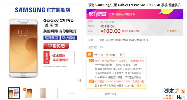 前段时间三星宣称将有“大家伙”跟大家见面,各路媒体纷纷挖掘这款新机的猛料。昨天,这款名为三星盖乐世c9pro的新机终于露出了真容。在天猫商城的三星官方旗舰店页面,三星c9pro已经开启预售,预约金100元,而预售价则为3199元。