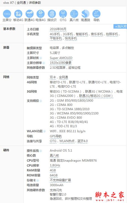 vivox7配置参数:
