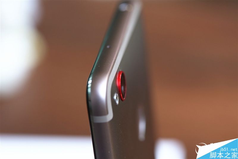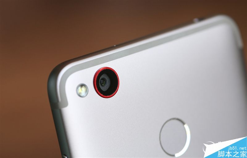 背面顶部左上角为单色闪光灯和采用红色金属圈保护的摄像头,背部中间位置偏上是指纹识别。