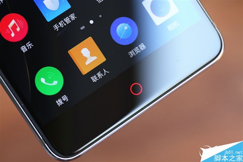 努比亚mini S配备的是5.2英寸的全高清屏幕,外层覆盖2.5D弧面玻璃,在熄屏状态下整个正面机身几乎浑然一体,点亮屏幕后红色小圆点Home键和黑色面板十分搭配(左右两侧有隐藏呼吸式的菜单键+返回键),看起来很有特色,当然辨识度也很高。