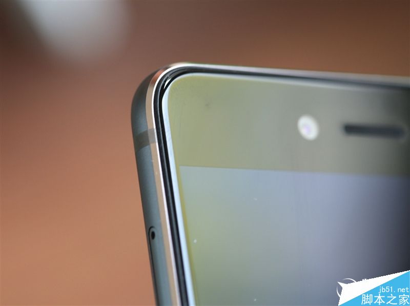 2.5D弧形玻璃和金属中框的交界处采用车削倒角精制加工,并进行亮面处理,看起来很精致。