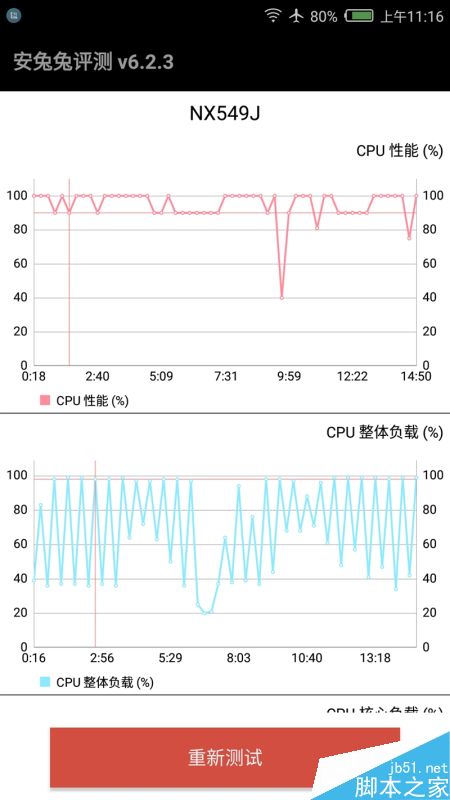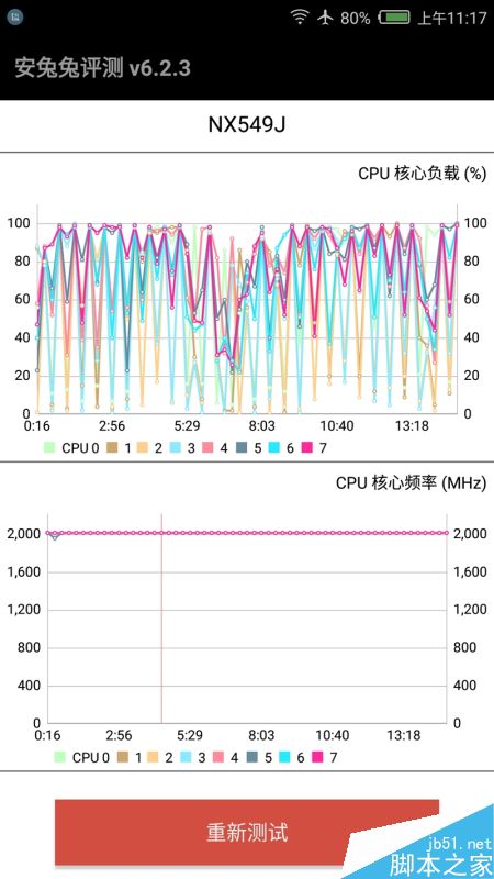 miniS的安兔兔实际压力测试显示,骁龙625效率很高,大部分时候都可以保持100%的完整性能,主频基本都在1.8-2GHz之间波动频率很高,机身散热控制不错。