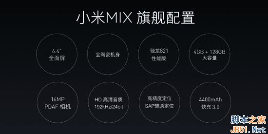 配置方面,小米MIX也采用了骁龙821性能版,4GB RAM+128GB ROM,采用1600万像素后置摄像头,支持相位对焦,内置4400mAh并支持QC3.0快充。与小米Note2一样支持SAP辅助定位。