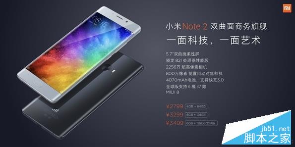 而小米Note 2是小米公司2016年10月25日在北京大学体育馆举办了发布会,会上带来了其最新旗舰产品。该机拥有双曲面屏幕,在时尚而富有科技感的外观下,该机的定位自然是年青一代的用户群体。