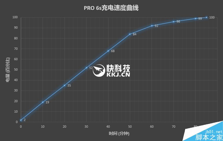 待机状态下从2%开始充电,耗时85分钟完全充满,速度不错,相比于PRO 6多花了大约15分钟,主要都消耗在了最后的慢速充电阶段,最初30分钟可充入超过50%、50分钟可充入约85%。