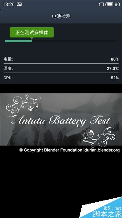 安兔兔电池测试(100%亮度/综合高负载),电量从100%到80%用时约1小时25分钟,预计全程能支持大约7个小时。