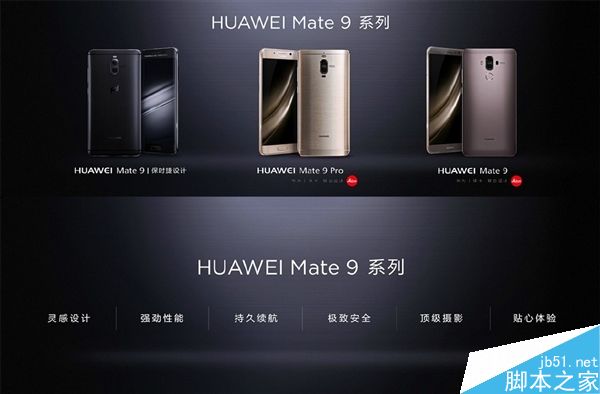 昨天下午,华为在上海正式发布了Mate 9、Mate 9 Pro(国内首发)、Mate 9保时捷设计三款旗舰产品,Mate 9采用的是5.9英寸1080p显示屏,搭载麒麟960处理器,内置4/6GB内存和32/64/128GB机身存储空间,提供一颗800万像素前置摄像头和1200+2000万像素摄像头,电池容量4000mAh,支持双卡双待全网通以及4.5V/5A快速充电。