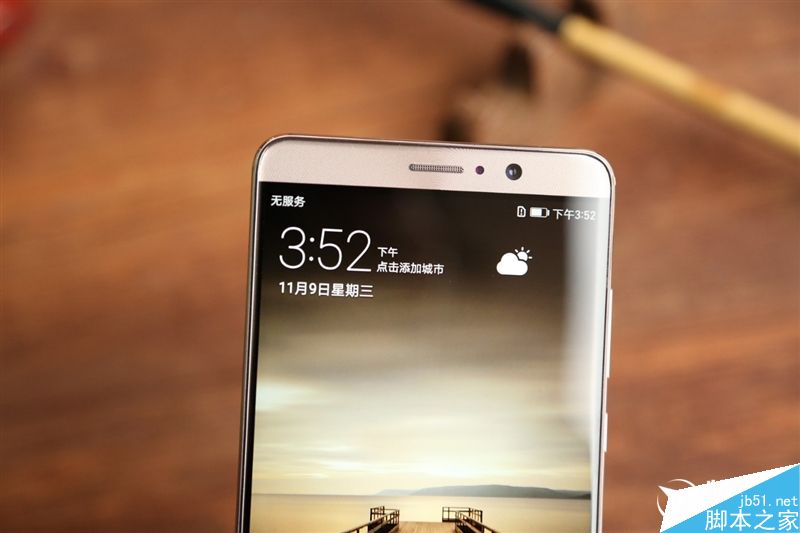 “下巴”很窄,上边只有HUAWEI LOGO,而三颗触控键还是内置虚拟式。