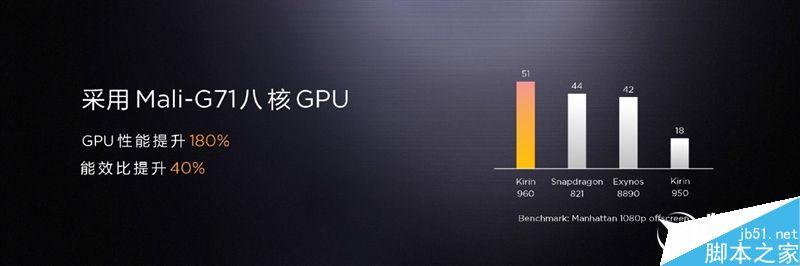 性能方面,麒麟960率先商用A73 CPU核心,集成四个A73、四个A53核心,最高主频2.4GHz,性能提升18%,能效提升15%;率先商用Mali-G71 GPU核心,而且有八个核心,图形性能飙升180%,能效提升20%,同时解除CPU对GPU的性能束缚,改善多核心性能,还支持2K/90fps VR,包括Google Daydream,MTP延迟小于18毫秒;率先商用完整Vulkan API解决方案,支持安卓6.0/7.0,释放多核GPU性能,综合提升40-400%;率先商用UFS 2.1存储技术,读写性能提升100%。