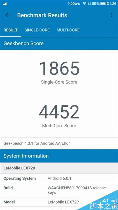 凭借主频高达2.4GHz的首发A73核心,以及总计八个核心,麒麟960 GeekBench 4 CPU测试跑分成绩高达单核心1952、多核心6200,十分抢眼,远远超过了骁龙821(右图/基于乐视乐Pro 3)。