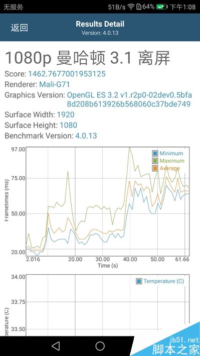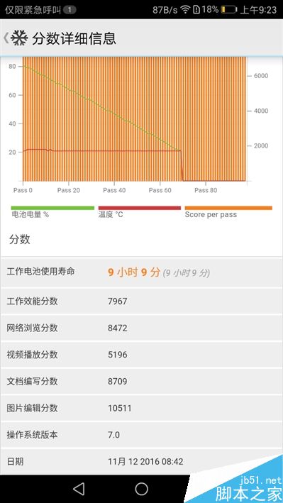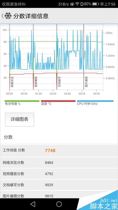 安兔兔满载拷机测试,麒麟960表现相当稳健,一直都维持在较高水平,显然完全没有过热问题存在。