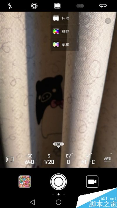 Mate 9提供了极为丰富、强大的拍照玩法,但相机界面设置得颇有层次,并不凌乱拥挤。顶部依次是闪光灯、大光圈模式开关、色彩模式(标准/鲜艳/柔和)、滤镜、前后摄像头切换,底部中间的标记处上滑可以调出专业模式。