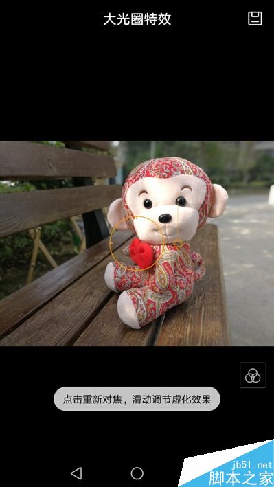 大光圈模式拍摄的照片在相册中浏览时,右上角会显示一个光圈图标,点击即可重新对焦,滑动调整虚化效果。