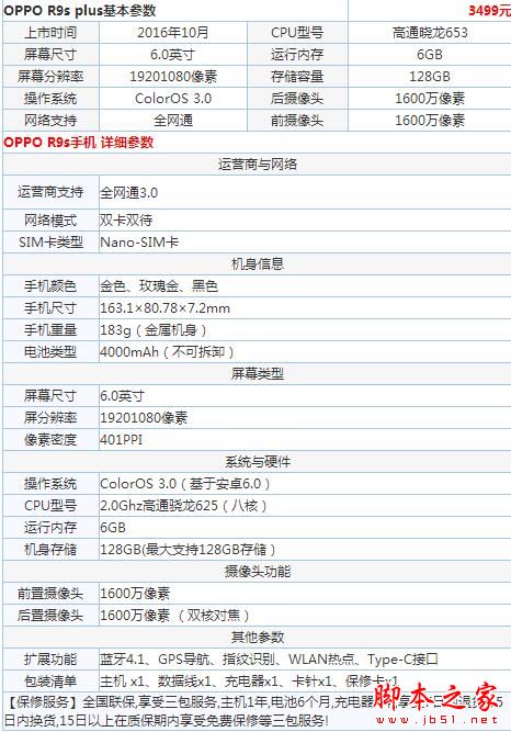 OPPO R9s plus硬件规格详情如下,参数党必看:
