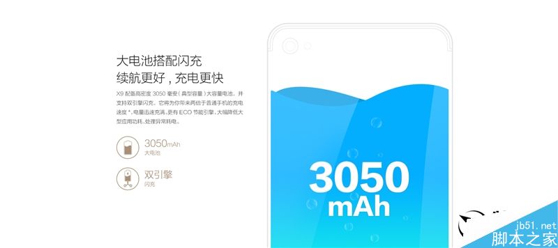 X9内置的是3050mAh容量电池,这跟上代的X7的电池容量基本一致(3000mAh),从实际测试的结果看,用户坚持一天完全没有问题。