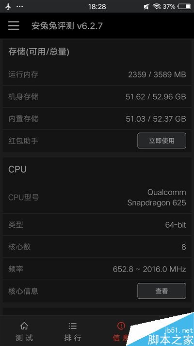 这次的X9选择了基于14nm工艺的高通骁龙625,这是一款性能和功耗都很均衡的处理器,而内存组合依然是4GB RAM+64GB存储,实际开机后机身RAM剩余2.5GB,使用一段时间后剩余1.9GB左右,完全不用担心内存吃紧的问题。