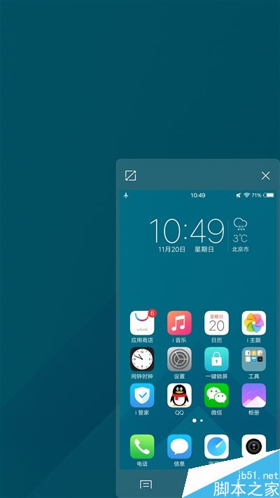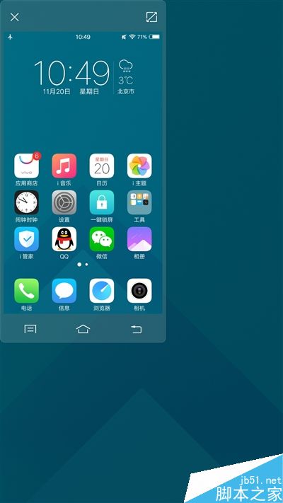 体验X9的这段时间,新系统在流畅性上依然出色,日常使用和多任务切换都很少卡顿的情况发生,而系统的UI也发生了一些调整,保持小清新风格的同时,图标借鉴了扁平化设计,同时底部上拉的快捷栏和下拉通知栏都变成半透明的毛玻璃设计,前置Home键逻辑依然是,轻触或者按下去系统是返回主界面,而现在呼出任务管理是按系统原生菜单键(任务管理变成了卡片式)。