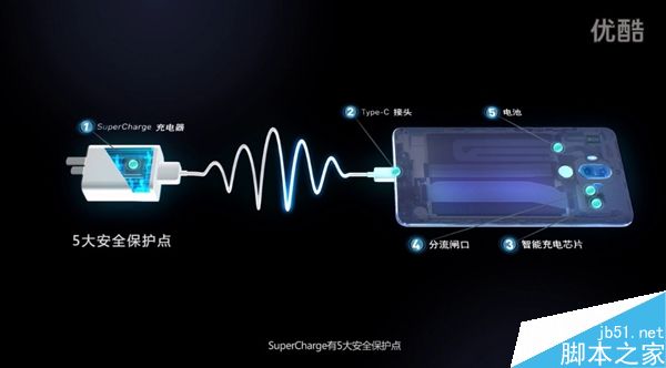 在发布会上,余承东表示,Super Charge具备智能适配、快速高效、持续低温、多重安全四大特点,比上一代Mate 8的Fast Charge快50%、比iPhone 7 Plus快400%、前30分钟充电可达58%。