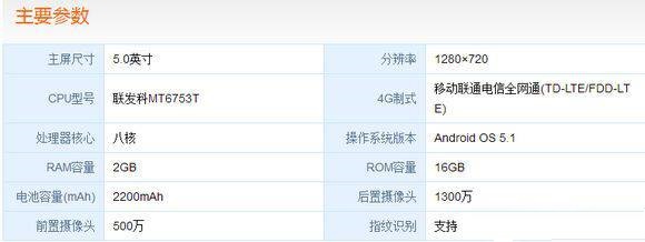 畅享5S搭载5英寸720*1280分辨率IPS屏幕,处理器为八核1.5GHz联发科MT6735T,前置500万像素摄像头,后置1300万像素摄像头,2GB RAM和16GB ROM内存组合。华为畅享5S系统是运行基于Android 5.1定制的EMUI 3.1,内置电池2200毫安时。