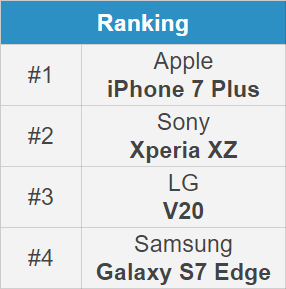 首先我们来介绍一下这四款智能手机的前置摄像头配置:iPhone 7 Plus 为 700 万像素、三星 S7 Edge 和 LG V20 均为 500 万像素、索尼 Xperia XZ 则为 1300 万像素。
