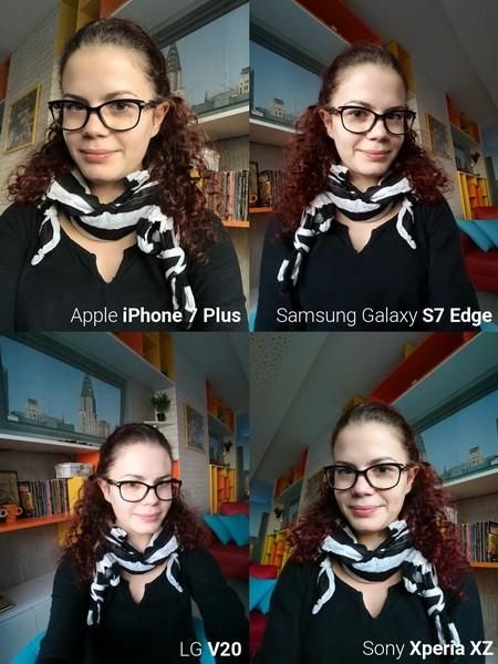 越来越多的人喜欢使用智能手机的前置摄像头进行自拍。近日,外媒对苹果 iPhone 7 Plus、三星 Galaxy S7 Edge、LG V20 和索尼 Xperia XZ 四款高端旗舰手机的自拍效果进行了一次对比,一起来看看吧。