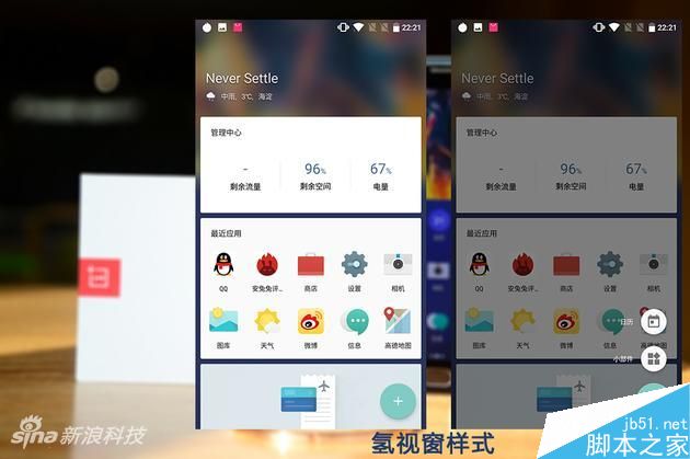 将屏幕向左划再来看氢视窗功能。新版氢视窗设计样式相比上代的“五颜六色”多了些纯净。并且能添加小部件,日历以及最近联系人等工具。就像是iOS中的widget,在一屏之中就可以查看所有的通知和信息。