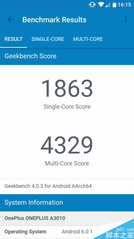 而在Geekbench4测试中,一加手机3T的单核得分是1863,多核得分是4329。
